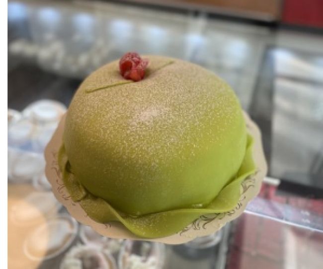 hallonsylt, samt lägger på ett lager rosa marsipan istället för den klassiska gröna färgen.